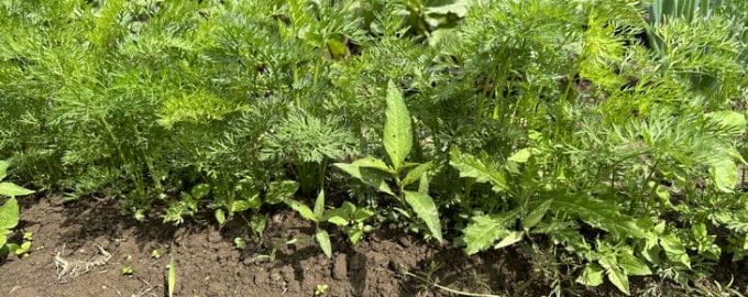 Wenn man Dill zwischen Möhrenbeeten wachsen lässt, bildet er eine Art aromatischen Kokon, der die Möhrenfliege, den Hauptfeind dieser Kultur, abschreckt.